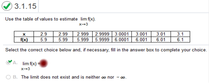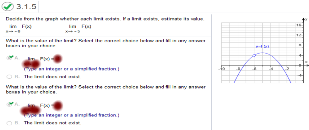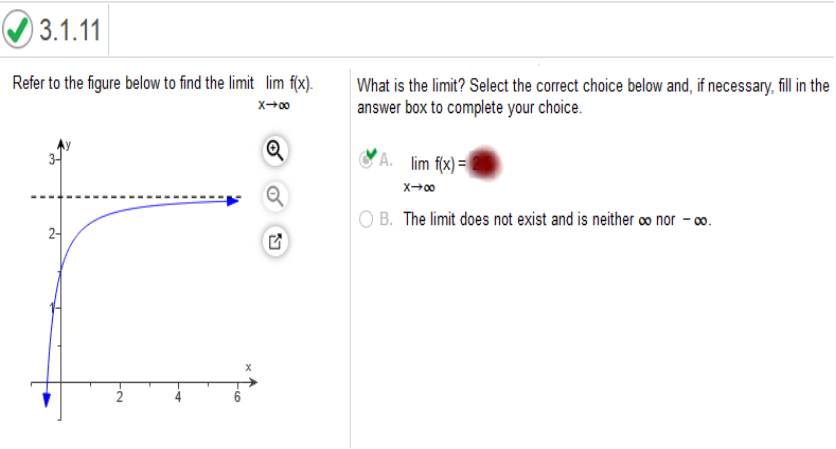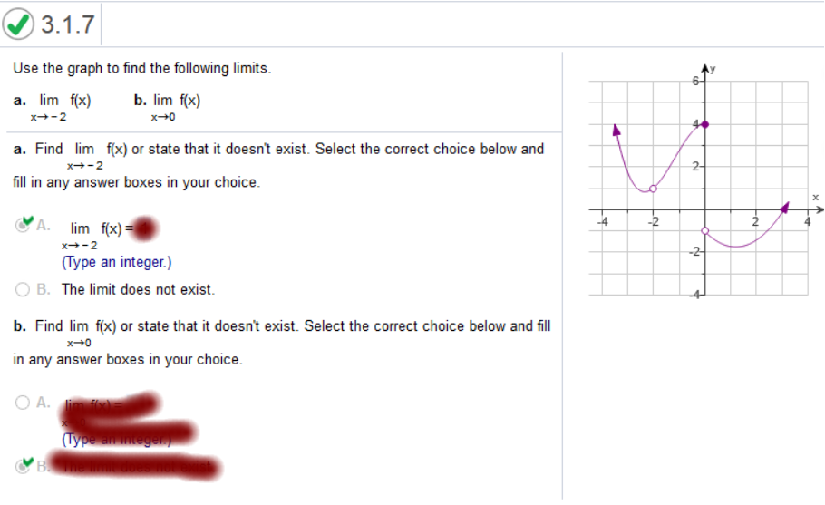 Study my answers and how they match the graph... Refer to the figure below to find the limit lim f(x). What is the limit