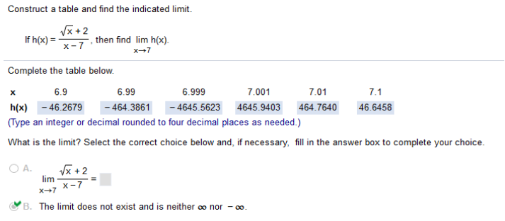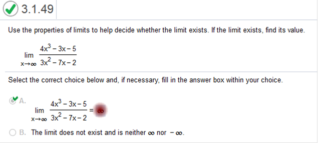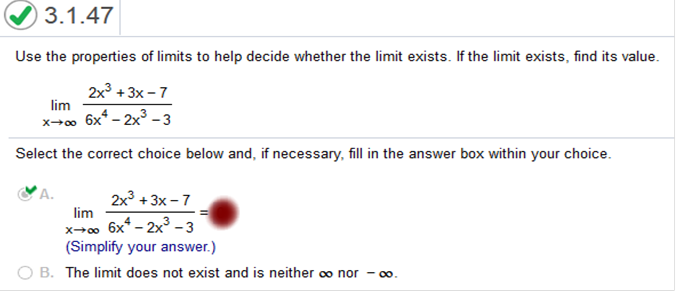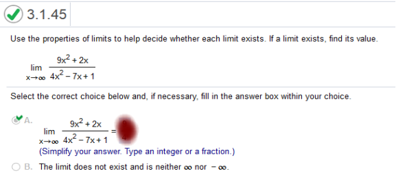This problem is the same steps as above! Use the properties of limits to help decide whether the limit exists. If the limit exists, find its value.