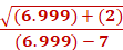 Plug the values in and solve. Compute each separately. For example: √6.9 +(2) / 6.9 – 7 = -46.2679 = -46.2679