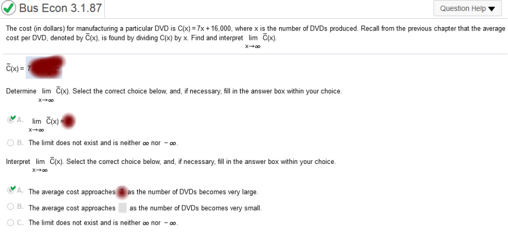 Now we plug in the value So, we are left with 7 The cost (in dollars) for manufacturing a particular DVD is C(x) = 4x + 15,000, where x is the number of DVDs produced. Recall from the previous chapter that the average cost per DVD, denoted by Find and interpret