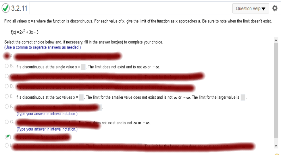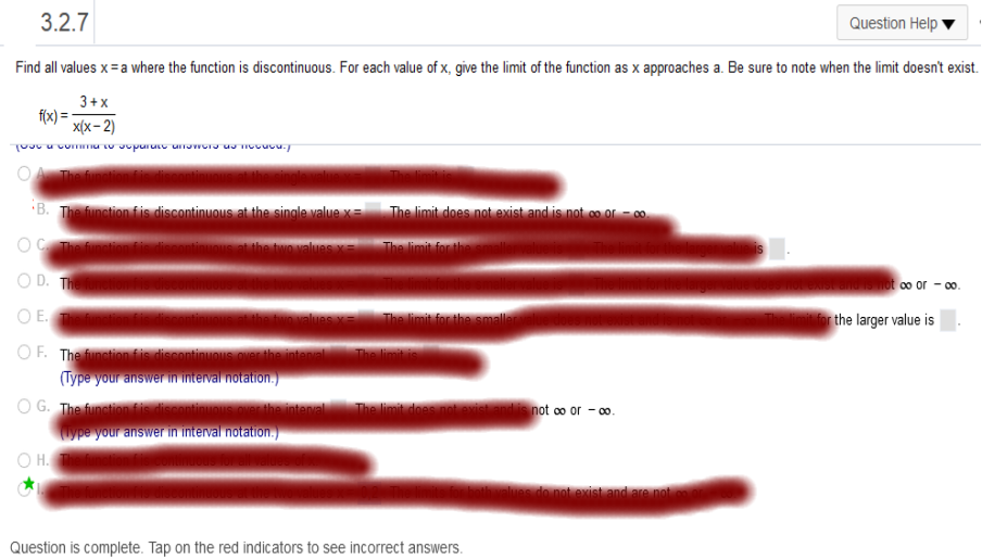 If you don’t understand any of this, please contact me. I will take the time to explain. ![]() This is the same as above. If you don’t understand any of this, please contact me. I will take the time to explain. Find all values x = a where the function is discontinuous. For each value of x, give the limit of the function as x approaches. a. Be sure to note when the limit doesn't exist.