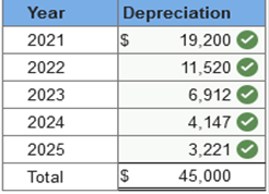 Required information Exercise 11-1 (Algo) Depreciation methods [LO11-2] Skip to question [The following information applies to the questions displayed below.] On January 1, 2021, the Excel Delivery Company purchased a delivery van for $48,000. At the end of its five-year service life, it is estimated that the van will be worth $3,000. During the five-year period, the company expects to drive the van 175,000 miles. Required: Calculate annual depreciation for the five-year life of the van using each of the following methods. rev: 05_15_2019_QC_CS-168776, 11_22_2019_QC_CS-191707 Exercise 11-1 (Algo) Part 3 3. Units of production using miles driven as a measure of output, and the following actual mileage: (Do not round intermediate calculations.) ![]() Explanation 3. Units-of-production: