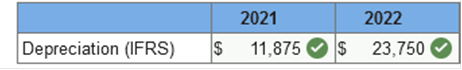 Required information Exercise 11-8 (Algo) IFRS depreciation partial periods [LO11-2, 11-10] Skip to question [The following information applies to the questions displayed below.] On June 30, 2021, Rosetta Granite purchased equipment for $158,000. The estimated useful life of the equipment is eight years and no residual value is anticipated. An important component of the equipment is a specialized high-speed drill that will need to be replaced in four years. The $32,000 cost of the drill is included in the $158,000 cost of the equipment. Rosetta uses the straight-line depreciation method for all equipment. Exercise 11-8 (Algo) Part 1 Required: 1. Calculate depreciation for 2021 and 2022 applying the typical U.S. GAAP treatment. ![]() Explanation 1. U.S. GAAP: 2021: $158,000 ÷ 8 = $19,750 × 6/12 = $9,875 2022: $158,000 ÷ 8 = $19,750 Required information Exercise 11-8 (Algo) IFRS depreciation partial periods [LO11-2, 11-10] Skip to question [The following information applies to the questions displayed below.] On June 30, 2021, Rosetta Granite purchased equipment for $158,000. The estimated useful life of the equipment is eight years and no residual value is anticipated. An important component of the equipment is a specialized high-speed drill that will need to be replaced in four years. The $32,000 cost of the drill is included in the $158,000 cost of the equipment. Rosetta uses the straight-line depreciation method for all equipment. Exercise 11-8 (Algo) Part 2 2. Calculate depreciation for 2021 and 2022 applying IFRS. ![]() Explanation 2. IFRS: