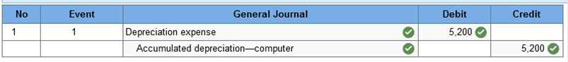 510,000 × $0.50 = $255,000 depletion Logging roads: $255,000 ÷ 5,100,000 board feet = $0.050 per board foot 510,000 × $0.050 = $25,500 depreciation Required information Exercise 11-23 (Algo) Change in estimate; useful life and residual value of equipment [LO11-2, 11-5] Skip to question [The following information applies to the questions displayed below.] Wardell Company purchased a mainframe on January 1, 2019, at a cost of $49,000. The computer was depreciated using the straight-line method over an estimated five-year life with an estimated residual value of $7,000. On January 1, 2021, the estimate of useful life was changed to a total of 10 years, and the estimate of residual value was changed to $400. Exercise 11-23 (Algo) Part 1 Required: 1. Prepare the year-end journal entry for depreciation in 2021. No depreciation was recorded during the year. (If no entry is required for a transaction/event, select "No journal entry required" in the first account field. Round your final answer to nearest whole dollar.) ![]() Explanation 1. Calculation of annual depreciation after the estimate change: