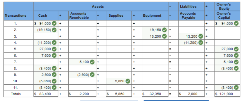 Homework Chapter 01 02 03 04 05 06 07 08 09 10 11 12 13 Test 01 02 03 04 05 06 07 08 09 10 11 12 13 Final Exam 01 02 Project Office Accounting: Homework Chapter 1 General Questions & Answers Analyzing the effects of transactions on the accounting equation. LO 2-1, 2-2, 2-3 On July 1, Tommy Wrigley established Wrigley Home Appraisal Services, a firm that provides expert residential appraisals and represents clients in home appraisal hearings. TRANSACTIONS The owner invested $94,000 in cash to begin the business. Paid $19,150 in cash for the purchase of equipment. Purchased additional equipment for $13,200 on credit. Paid $11,200 in cash to creditors. The owner made an additional investment of $27,000 in cash. Performed services for $7,600 in cash. Performed services for $5,100 on account. Paid $3,400 for rent expense. Received $2,900 in cash from credit clients. Paid $5,860 in cash for office supplies. The owner withdrew $8,400 in cash for personal expenses. Record in equation form the changes that occur in assets, liabilities, and owner’s equity for the above transactions. Analyze: What is the ending balance of cash after all transactions have been recorded?
