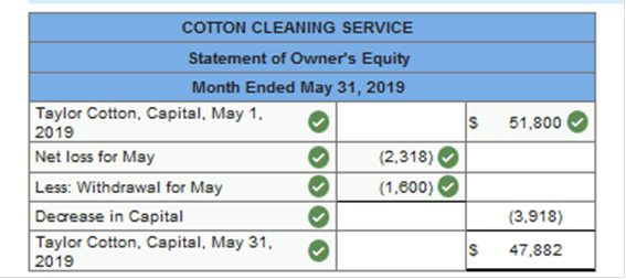 Prepare a statement of owner’s equity for the month of May 31, 2019.