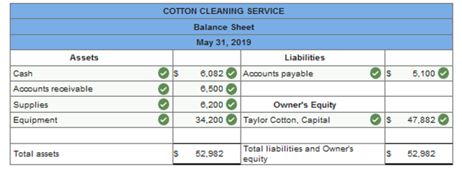 Preparing an income statement, a statement of owner's equity, and a balance sheet. LO 2-4, 2-5 The following equation shows the transactions of Cotton Cleaning Service during May. The business is owned by Taylor Cotton.